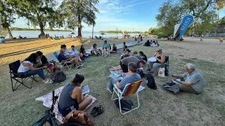 En un espacio abierto frente al río, en el Balneario Municipal de Paraná, se desarrolla el Taller de Escritura Literaria “El vuelo de las chicharras”. La propuesta es impulsada por la Universidad Autónoma de Entre Ríos (UADER), a través del Departamento Cultura, coordinada por la escritora y profesora Belén Zavallo.